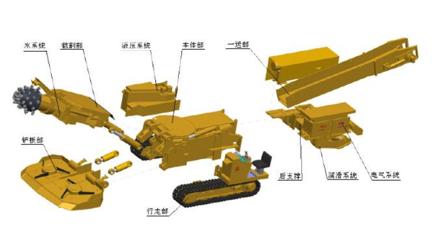 7、设备启动前务必要确认所有人已经远离以下六大危险区域:1)铲板前方和侧面2)截割部和四周3)履带两侧4)第一运输机上方5)油箱和电控箱的后部及侧面6)第二运输机下方